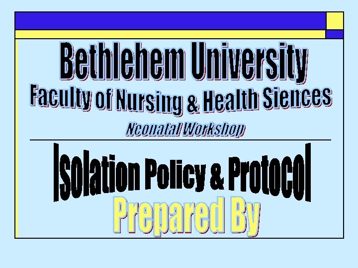 Isolation Policy n n Apply comprehensive standard precautions to all babies admitted to isolation room in NICU. Ensure utilizing effective communication channels between all levels of care providers. Use single disposable items for each baby admitted to isolation room. Always label the isolation room with the type of isolation, and necessary instructions.