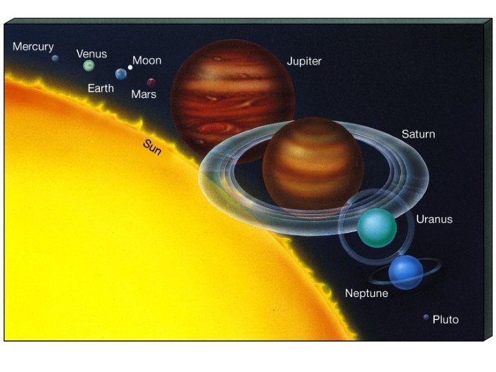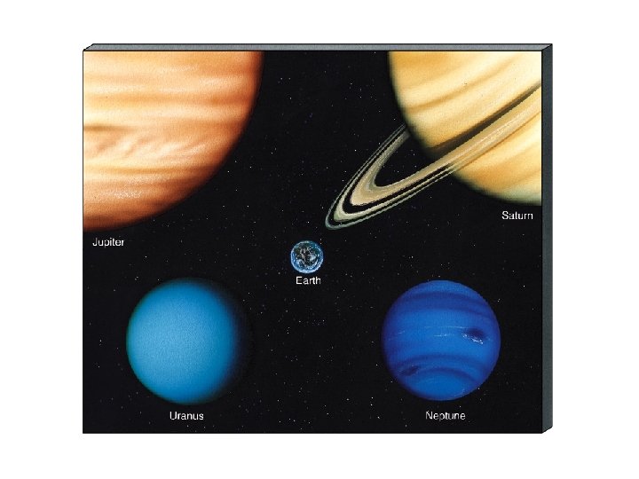 Planet Distance Mass Moons Density (AU) (Earth = 1) Mercury Venus Earth Mars Jupiter Saturn Uranus Neptune 0. 39 0. 72 1. 0 1. 5 5. 2 9. 5 19. 2 30. 1 0. 05 0. 9 1. 0 0. 11 318 95 17 17 0 0 1 2 28 18 21 8 5. 43 5. 25 5. 52 3. 95 1. 33 0. 69 1. 29 1. 64 Pluto 39. 5 0. 002 3 2. 03 (Water =1)