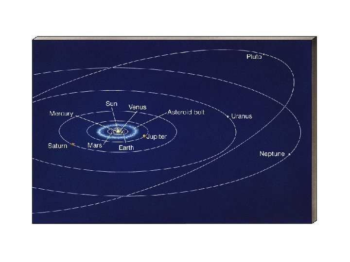 Planet Mercury Venus Earth Mars Jupiter Saturn Uranus Neptune Pluto Distance Mass (AU) (Earth = 1) 0. 39 0. 72 1. 0 1. 5 5. 2 9. 5 19. 2 30. 1 39. 5 0. 05 0. 9 1. 0 0. 11 318 95 17 17 0. 002 Moons Density (Water =1) 0 0 1 2 28 18 21 8 3 5. 43 5. 25 5. 52 3. 95 1. 33 0. 69 1. 29 1. 64 2. 03