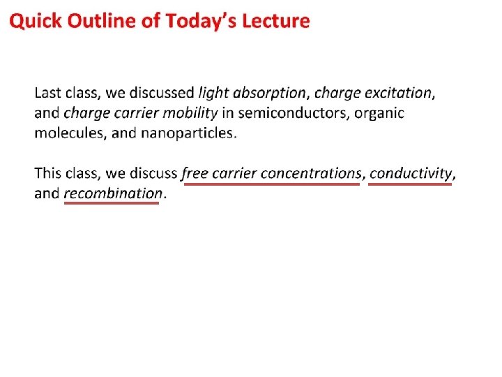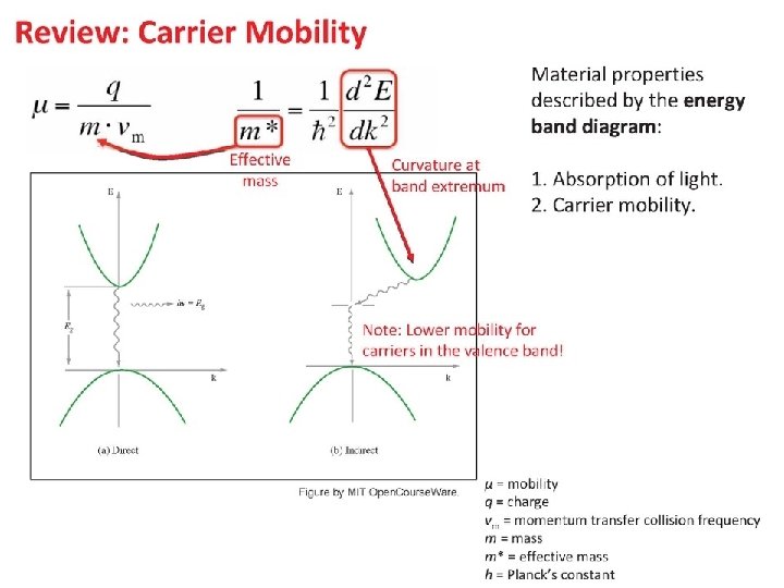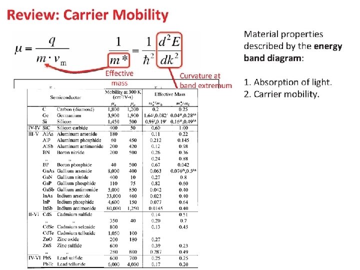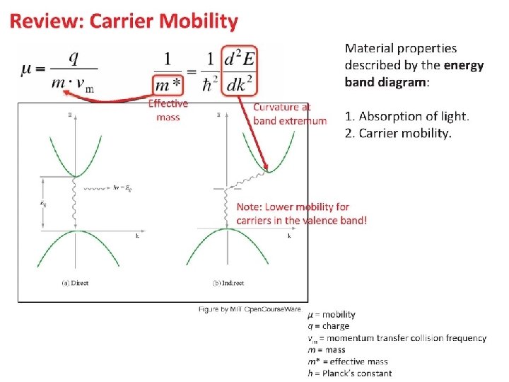 Outline • Review Material Properties Band gap Absorption Coefficient Mobility
