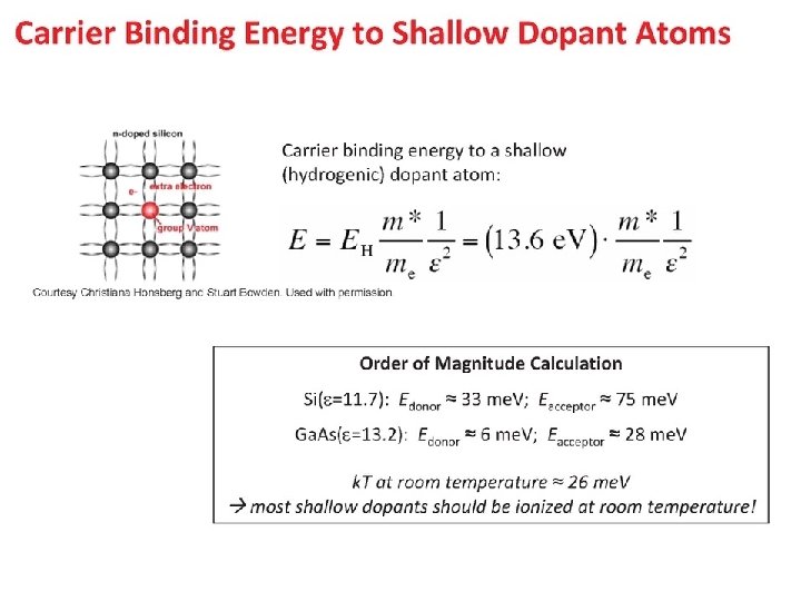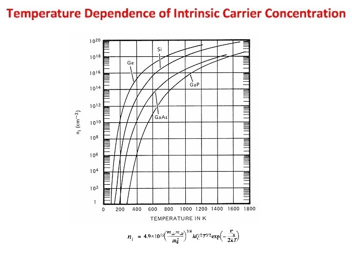 Properties Si Ge Ga. As 5. 0 x 1022 28. 09 approx. 3 x 105 Diamond 2. 328 11. 9 4. 42 x 1022 72. 60 approx. 1 x 105 Diamond 5. 3267 16. 0 4. 42 x 1022 144. 63 approx. 4 x 105 Zincblende 5. 32 13. 1 Effective Density of States in the Conduction Band, Nc (cm -3) 2. 8 x 1019 1. 04 x 1019 4. 7 x 1017 Effective Density of States in the Valence Band, Nv (cm -3) 1. 04 x 1019 6. 0 x 1018 7. 0 x 1018 4. 05 1. 12 4. 0 0. 66 4. 07 1. 424 1. 45 x 1010 2. 4 x 1013 1. 79 x 106 24 Atoms/cm 3 Atomic Weight Breakdown Field Crystal Structure Density (g/cm 3) Dielectric Constant Electron Affinity (V) Energy Gap at 300 K (e. V) Intrinsic Carrier Concentration (cm -3) Intrinsic Debye Length (microns) 0. 68 2250 Intrinsic Resistivity (ohm-cm) Lattice Constant (angstroms) 105 2. 3 x 5. 43095 47 5. 64613 108 5. 6533 Linear Coefficient of Thermal Expansion, ΔL/L/ΔT (1/deg C) 2. 6 x 10 -6 5. 8 x 10 -6 6. 86 x 10 -6 Melting Point (deg C) Minority Carrier Lifetime (s) 1415 2. 5 x 10 -3 937 approx. 10 -3 1238 approx. 10 -8 Mobility (Drift) (cm 2/V-s) µn, electrons 1500 3900 8500 Mobility (Drift) (cm 2/V-s) µp, holes 475 1900 400 Optical Phonon Energy (e. V) 0. 063 0. 037 0. 035 76 (electron) 55 (hole) 105 58 Specific Heat (J/g-deg C) 0. 7 0. 31 0. 35 Thermal Conductivity at 300 K (W/cm-deg. C) 1. 5 0. 6 0. 46 Phonon Mean Free Path (angstroms) Thermal Diffusivity (cm 2/sec) Vapor Pressure (Pa) 0. 9 0. 36 0. 24 1 at 1650 deg C; 10 -6 at 900 deg C 1 at 1330 deg C; 10 -6 at 760 deg C 100 at 1050 deg C; 1 at 900 deg C