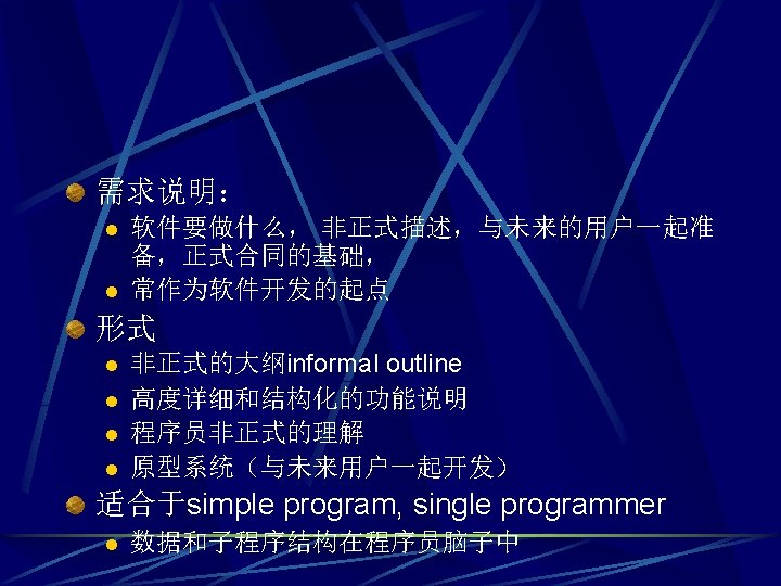 面向对象的历史 1960年 - 70年代 l l COBOL, FORTRAN, C 结构化分析和设计技术 1980年 - 1990年前 l l Smalltalk, Ada, C++, Visual Basic 早期面向对象生成(代码)方法 1990年中晚期 l l l Java UML Unified Process