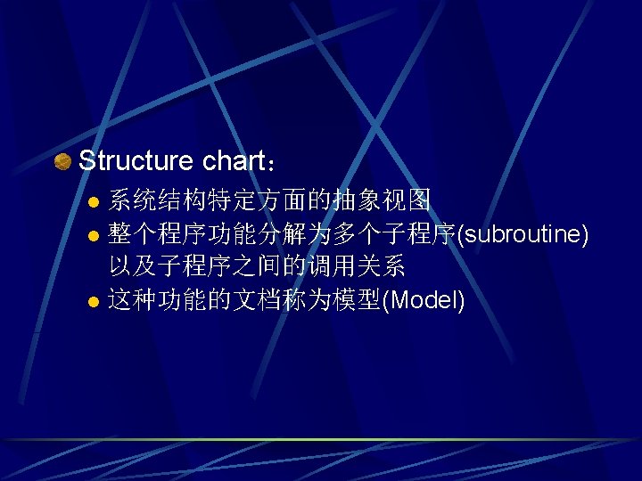 Structure Modeling l l class diagram object diagram Behavior Modeling l l use case diagram interaction diagram(Sequence diagram/collaboration diagram) activity diagram statechart diagram Architecture Modeling l l component diagram deployment diagram
