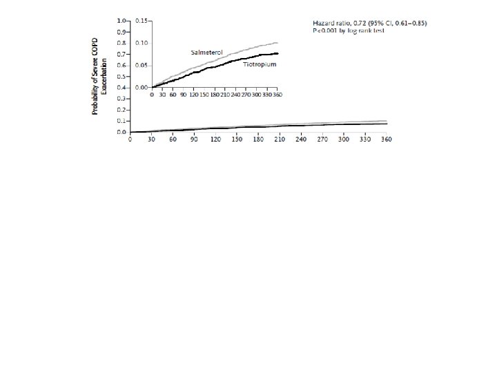Moderate COPD • Most patients with moderate airflow limitation when diagnosed • Long acting bronchodilator – Superior to short-acting in reducing symptoms, exacerbations, quality of life • Options: – formoterol fumarate and salmeterol xinafoate (8 -12 hours) – tiotropium bromide (24 hours ) – OR combination of both Are long acting anticholingeric antagonists and Beta-2 agonists equal?