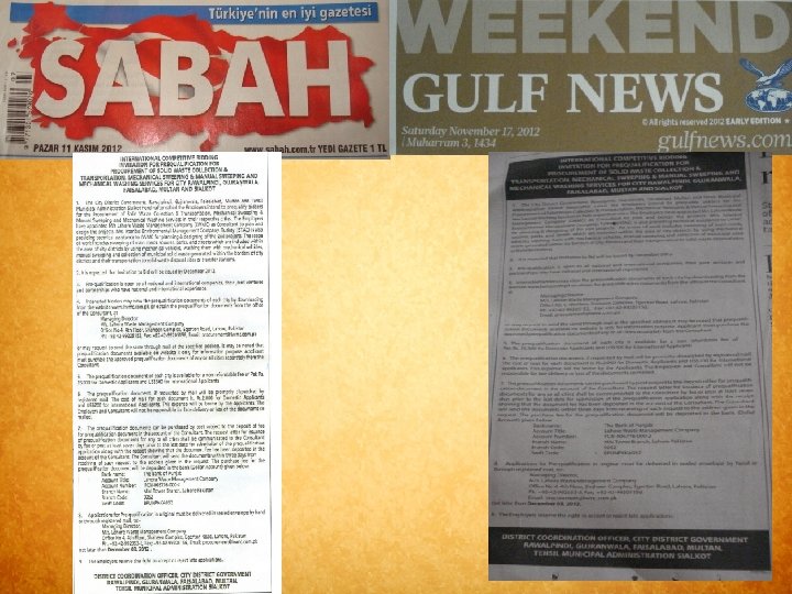 Firms Pre –Qualified i. M/s. Ozkartallar Insaat Sanayi Ve Ticaret Limited Sirketi ( six cities) ii. M/s. Albayrak Turizm Seyahat Ve Ticaret A. S. Turkey, Pakistan Branch Office (all six cities) iii. M/s. CEVRE Insaat Temizlik Tic Ltd Sti (all six cities) iv. M/s Ghulam Hussain & sons Ltd. , ( Skt. & Bhw) v. M/s Waste Busters Consortium with Conpro (Applied but rejected )