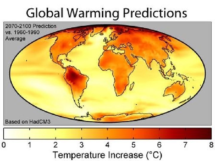 • Kao posledica efekta staklene bašte javlja se porast globalne temperature vazduha na Zemlji, a poslednjih 150 god. Ona se povisila za 0. 7 0 C, ali ne jednako na čitavoj planeti. Najveći porast temperature je oko Antarktika gde je najveća količina leda na Zemlji, što je dovelo do porasta nivoa Svetskog mora, koji god. Iznosi 1. 2 mm. Ako bi se nastavilo tim tempom nivo Svetskog mora porastao bi do sr. 21. veka za 40 -60 cm. U tom slučaju bili bi ugroženi mnogi primorski gradovi i niske plodne ravnice u deltama velikih reka.