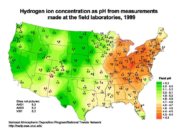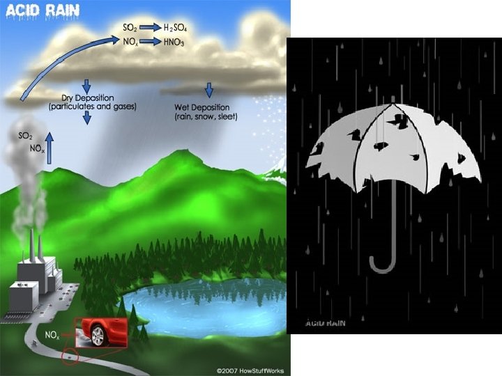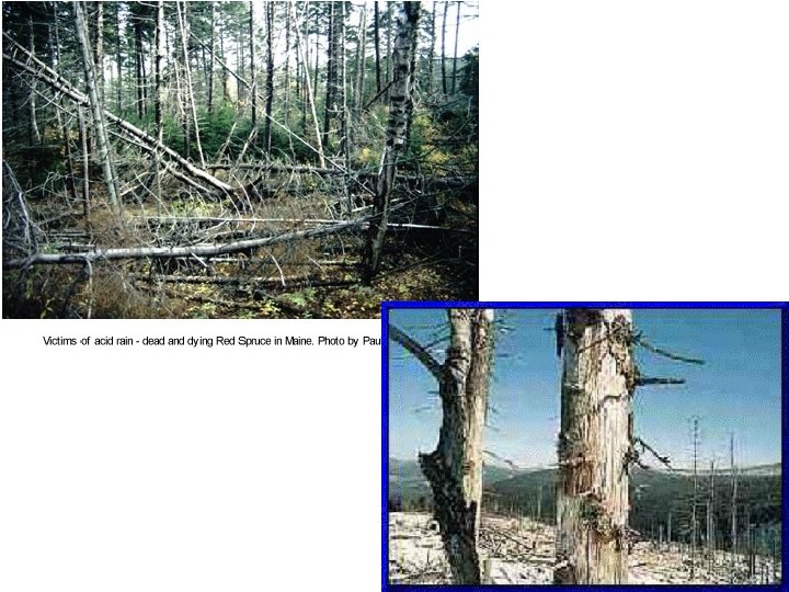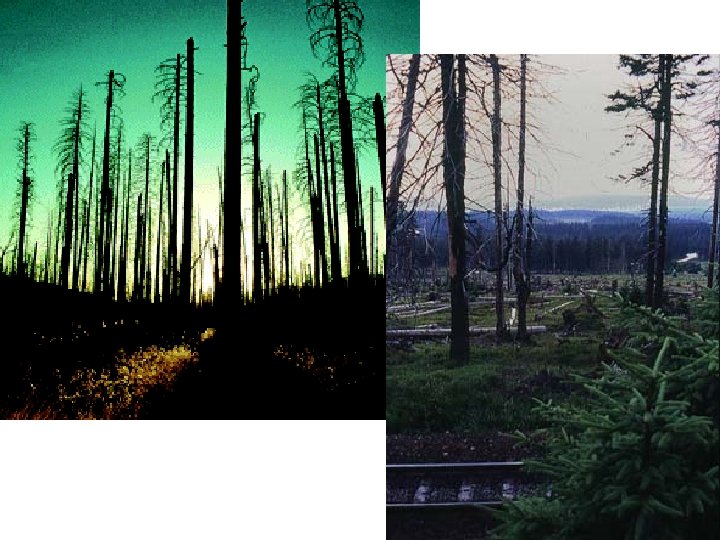 Kisele kiše • Zbog velike potrošnje uglja, nafte, naftnih derivata i prirodnog gasa, udeo sumpor-dioksida i azotnog oksida među zagađivačima vazduha u stalnom je porastu. Zajedno sa povećanim količinama ugljen-dioksida, ugljenmonoksida, azotnog oksida i dima u uslovima gradske magle mogu izazvati masovno trovanje ljudi. • Veću opasnost predstavalja to što sumpor-dioksid i azot-oksid u dodiru s vodom prelaze u sumpornu i azotnu kiselinu koje uništavaju i oštećuju sve površine na koje padnu. Ova pojava u vreme izlučivanja padavina označena je kao kisele kiše. • Posledice: sušenje šuma, uništavanje živog sveta u jezerima, delimično oštećivanje vegetacije, doprinose okiseljivanju zemljišta. . . U četinarskim šumama drveće najpre izgubi iglice, a potom se osuši. • Kisele kiše su najviše izražene u Kanadi, SAD, Skandinaviji, zapadnoj i sr. Evropi. • Kisele kiše ugrožavaju i podzemne vodene resurse i to je velika patnja za vodene zalihe budućih generacija.