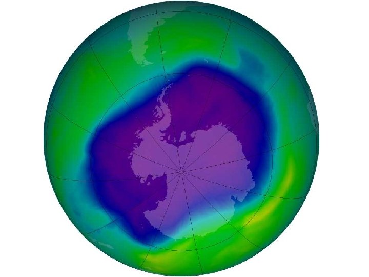 Uništavanje ozonskog omotača • Ozon štetno deluje na organizam čoveka. Njegova količina u vazduhu povećava se s visinom i dostiže maksimum u stratosferi. Ozon ima osobinu da upija UV zrake i na taj način štiti živi svet na Zemlji od prekomerne Sunčeve radijacije. • U poslednjih nekoliko decenija primećeno je oštećenje ozonosfere. Na nekim mestima ona je veoma razređena i ti delovi atmosfere nazivaju se ozonske rupe. Ozon je najoštećeniji iznad jugoistočne Australije, Novog Zelanda, Antarktika i Arktika. • Osnovni uzrok uništavanja ozonskog sloja je emitovanje CFC (hlorfluorougljovodonik) jedinjenja, koja sadrže atome hlora, fluora, broma i ugljenika. U dodiru sa ozonom oni mu pri hemijskim reakcijama uzimaju jedan atom pretvarajući ga u O 2 koji gubi moć upijanja UV zraka. Jedan atom hlora uništi do 100000 molekula ozona. • CFC jedinjenja se nalaze u raznim sprejevima, rashladnim i protivpožarnim uređajima i mlaznim avionima. • Svake god. koncentracija CFC jedinjenja raste za 5%. Međunarodna zajednica donela je 1985. god. u Beču konvenciju o zaštiti ozona.