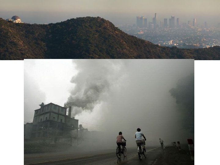Zagađenje vazduha • Zagađenost vazduha predstavlja prisustvo jednog ili više zagađivača u količinama, sa osobinama i vremenom trajanja koji su štetni za živi svet. • Glavni izvori aerozagađenja su sagorevanje fosilnih goriva, industrija, rudarstvo, spaljivanje čvrstog otpada i radioaktivno zagađenje. • Među zagađivačima najčešći su: jedinjenja sumpora, ugljen-monoksid, ugljen-dioksid, ugljovodonici, oksidi azota, olovo, razne čvrste čestice. . . • Problem zagađenja vazduha postao je posebno izražen u 20. veku, usled nagle urbanizacije, industrijalizacije i razvoja saobraćaja. Posle katastrofe u Londonu 1952. god. Kada je smog odneo preko 4000 života, doneti su prvi zakoni za sprečavanje zagađenja vazduha. • Čestice aerosoli koje se pojavljuju u čvrstom i tečnom agregatnom stanju menjaju vremenske prilike u nižim delovima atmosfere. One utiču na smanjenje Sunčeve radijacije, povećanje padavina, stvaraju izmaglicu i smanjuju vidljivost.