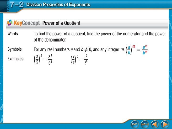 Power of a Quotient Power of a Product Power of a Power Answer: