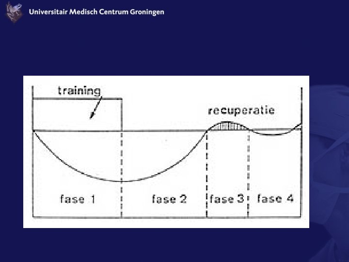 Overtraining • Definitie – ‘er wordt meer getraind dan het lichaam op dat moment aankan’ • => Onvolledig/Incorrect!!! – Hoge belasting van stressoren in combinatie met onvoldoende regeneratie/herstel – Stressoren op fysiek, sociaal en mentaal vlak – (onverklaarde) prestatievermindering, vermoeidheid