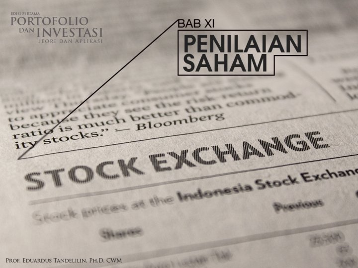 PENDEKATAN PENILAIAN SAHAM LAINNYA 41/45 Rasio Harga/Nilai Buku. Hubungan antara harga pasar dan nilai buku per lembar saham dapat dipakai untuk menentukan nilai saham. Rasio harga terhadap nilai buku banyak digunakan untuk menilai saham-saham sektor perbankan. Hasil penelitian menemukan bahwa saham-saham yang memiliki rasio harga/nilai buku yang rendah akan menghasilkan return yang secara signifikan lebih tinggi dibanding saham-saham yang memiliki rasio harga/nilai buku yang tinggi.