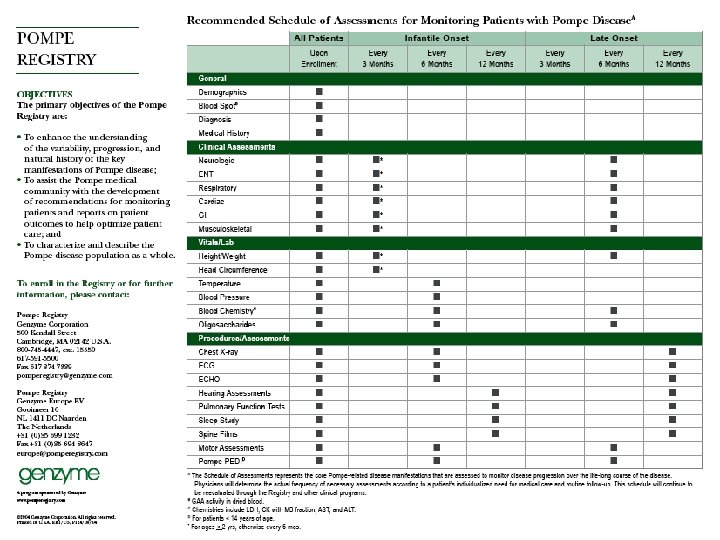 Late-onset Pompe Disease Natural History Age-specific distribution of events in a Dutch cohort of mean age 48. 6 years (n=54) Black line = mean age for event First complaints n=54 Running problems n=31 Diagnosis n=54 Problems going up and down staircase n=46 Problems rising from armchair n=45 Problems rising from lying position n=37 Walking problems n=41 Problems with dressing n=32 Problems going to toilet n=18 Start of walking aid use n=23 Start of wheelchair use n=26 Start use of artificial ventilation n=20 0 Brain. 2005; 128: 671 -677. 10 20 30 40 50 60 70 yrs