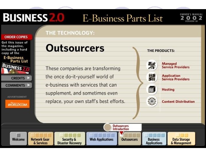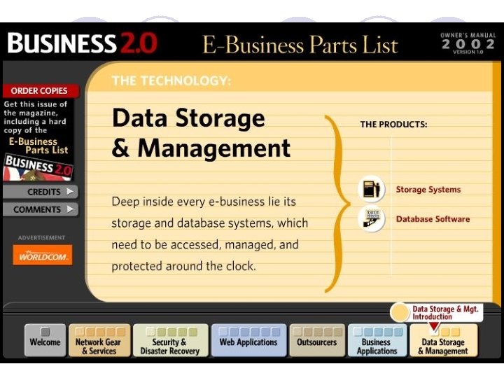 Kategori e-business teknologi Network Gear & Services Outsourcers Web Applications Business Applications Security & Disaster Recovery Data Storage & Management