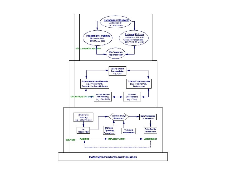 Summary Authorities • Internal EPA Policies EPA Order 5360. 1 EPA Manual 5360 • External Policies 48 CFR 46 40 CFR 30, 31, 36 Quality System Tools • Quality Management Plans • QA Project Plans • Standard Operating Procedures • Systematic Planning and the Data Quality Objectives Process • Assessments • Quality Assurance Annual Report and Work Plan