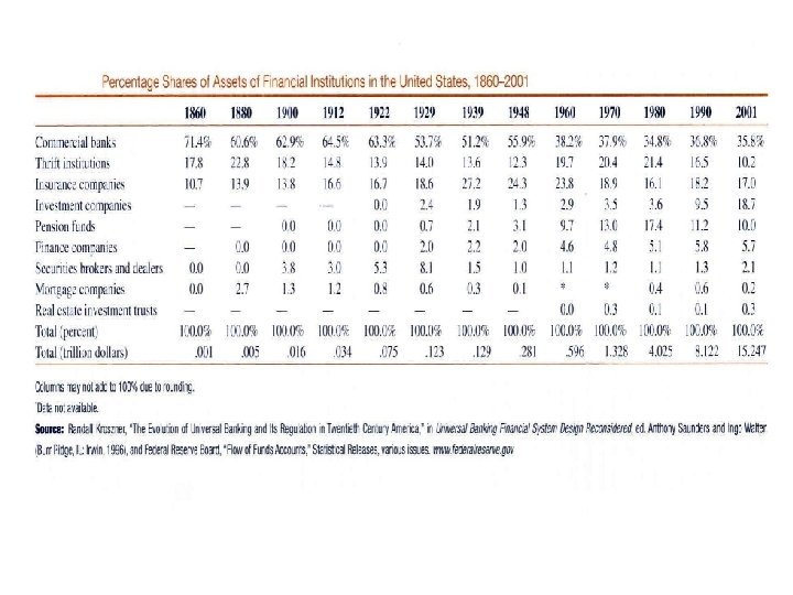Finance Companies – Activities similar to banks, but no depository function. – May specialize in installment loans (e. g. automobile loans) or may be diversified, providing consumer loans and financing to corporations, especially through factoring. – Commercial paper is key source of funds. – Captive Finance Companies: e. g. GMAC
