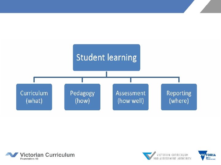 Victorian Curriculum F-10 • Released in September 2015 as a central component of Education State, Victorian Curriculum F-10 • Provides a stable foundation for whole school curriculum planning • Incorporates the Australian Curriculum • Builds on VELS and Aus. VELS • Reflects Victorian standards and priorities.