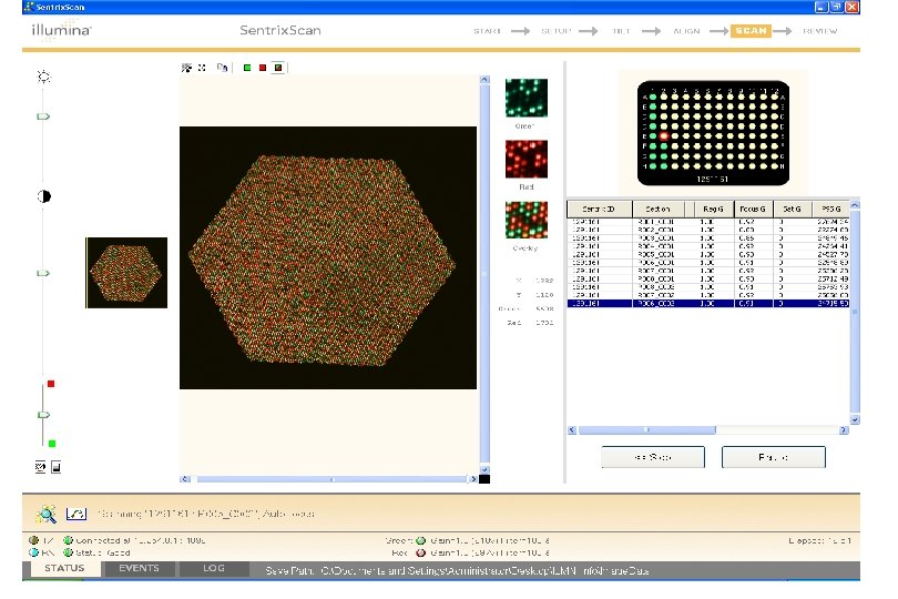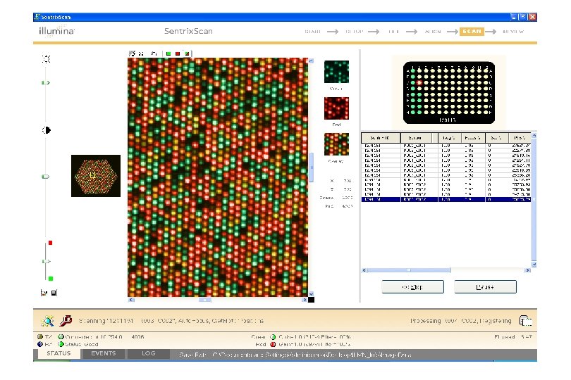 Bead. Array Reader • • • Confocal laser scanning system Resolution, 0. 8 micron Two lasers 532, 635 nm – Supports Cy 3 & Cy 5 imaging • Sentrix Arrays (96 bundle) and Slides for 100 k fixed formats