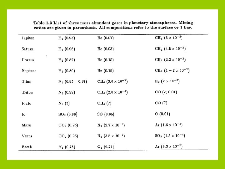 Atmospheres of the Solar System • Giant planets – – • Primary atmospheres (H 2, He, CH 4…) Little evolution (no surface, little escape) Terrestrial planets (Earth, Venus, Mars, Titan) – – • Secondary atmospheres (CO 2 / N 2, N 2 / O 2, N 2 / CH 4) Outgassed and strongly evolved (escape, surface interaction) Tenuous atmospheres (Pluto, Triton, Io, Enceladus) – • In equilibrium with surface ices or internal sources Exospheres (Mercury, Moon, other Galilean satellites) – Solar flux or solar wind action on surfaces