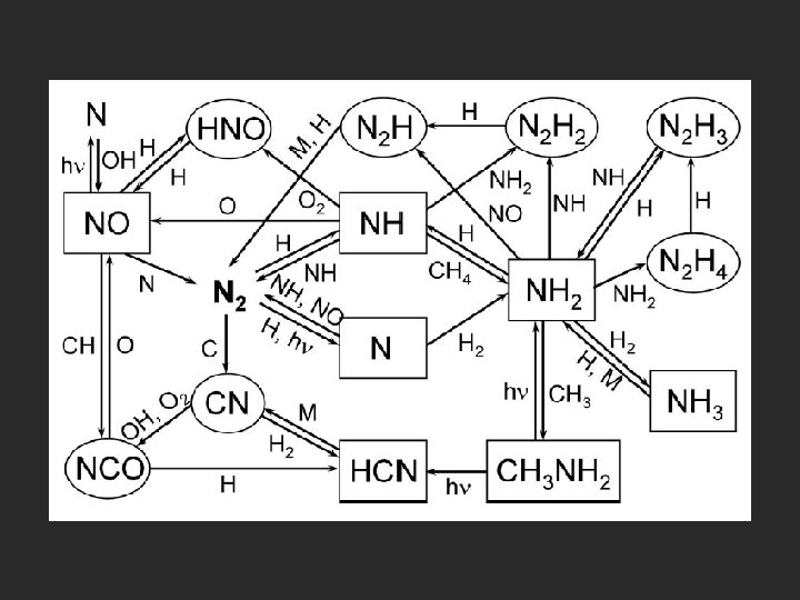 Equilibrium vs disequilibrium species in Giant Planets At the relevant T, NH 3 is thermodynamical equilibrium form of N In principle NH 3 / H 2 gives the N/H ratio … but PH 3 is NOT the equilibrium form of P Competition between chemical destruction and vertical convective transport Quench level : where tchem ~ tdyn Occurs at T ~1200 K for phosphine Observed PH 3 abundance still gives P/H ratio !