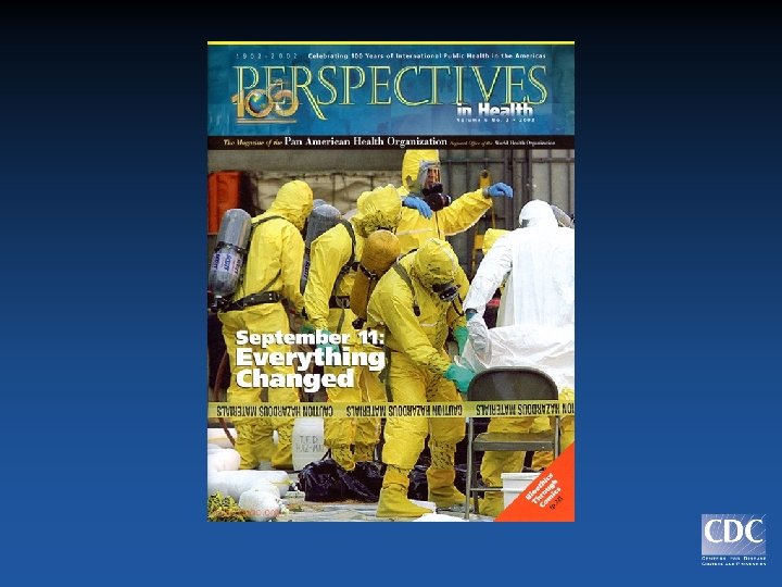 CDC Components Involved in Terrorism Preparedness • National Center for Infectious Diseases (NCID)— infectious agents • National Center for Environmental Health (NCEH)– chemical and radiologic agents • National Institute for Occupational Safety and Health (NIOSH)—worker protection • National Immunization Program (NIP) – immunization programs • Agency for Toxic Substances and Diseases Registry (ATSDR) – risk assessment and mitigation