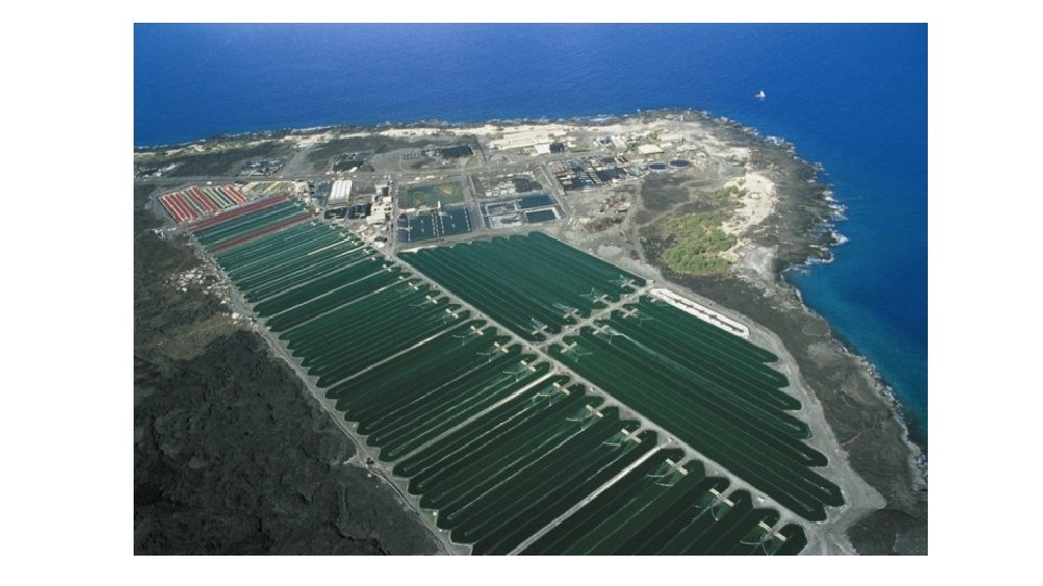 Energy balance Energy output: • Energy content of biomass: 17. 5 MJ/kg Energy input: • Heat (drying of biomass): 13. 7 MJ/kg • Electricity: 2. 7 MJ/kg • Fertiliser: 3. 4 MJ/kg • Infrastructure: 3. 5 MJ/kg Net energy balance: -5. 8 MJ/kg Lardon, L. et al. 2009 “Life-cycle assessment of biodiesel production from microalgae” Environmental Science & Technology 43: 6475 -6481.