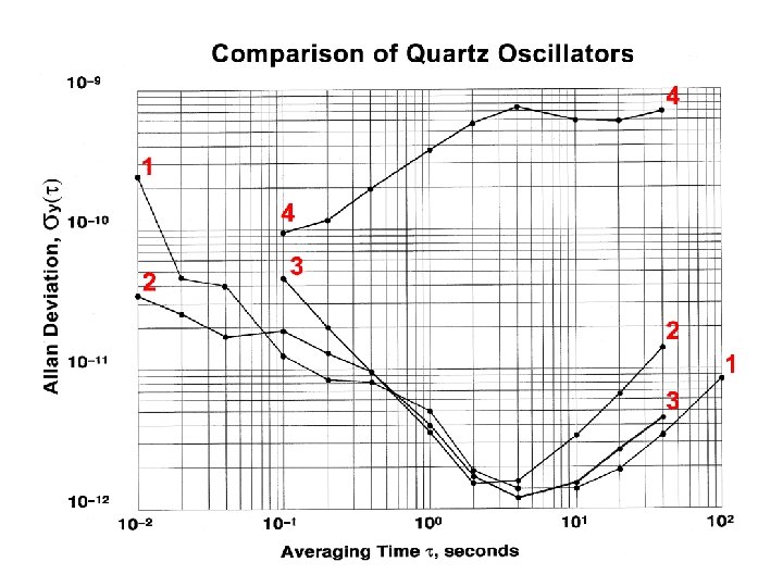 How long does it take for a oscillator to reach its noise floor? n Quartz u n Rubidium u n 1000 s Cesium u n < 10 s, sometimes < 1 s Several days to 30 days GPSDO u The noise continuosly averages down, because the GPS frequency is being always being steered and corrected to agree with UTC