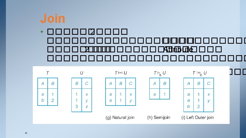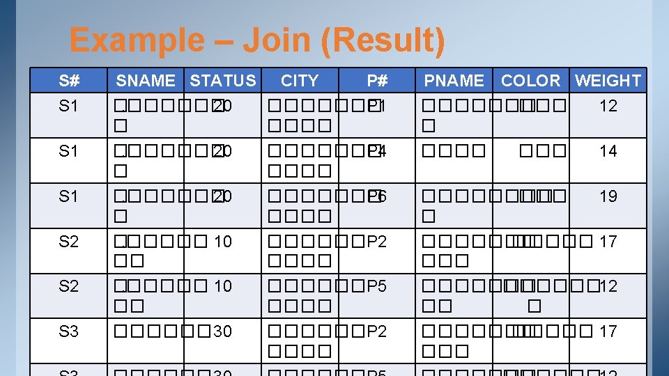 Rename • �������������� Attribute • ����� R RENAME old-attribute AS newattribute • ������ – R ��� Relation ������� Attribute – old-attribute ������� Attribute – new-attribute ������� Attribute • ���� S RENAME CITY AS SCITY 30