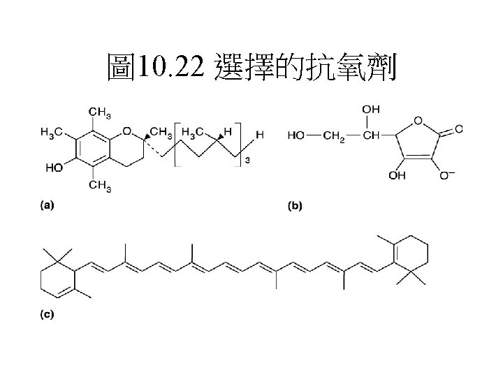 • From 0. 1% to as much as 4% of the ·O 2 used by actively respiring mitochondria form O 2 —more than enough to have lethal effects on a cell unless the free radical is quickly disposal of. • 有氧代謝約產生氧量的0. 1% 至 4% 之 ·O 2 -。超過此量時具致命性,除非自由基 能快速分解。