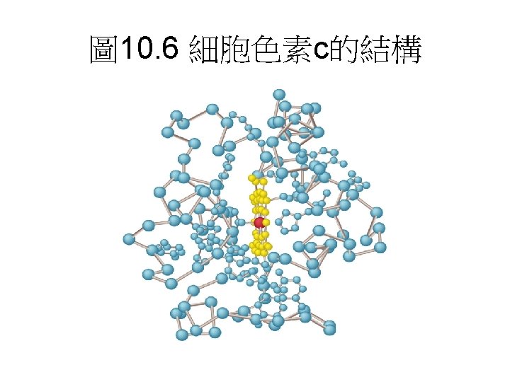 • 3 Complex III是由 2個B-type cytochrome、 cytochrome C 1與一個硫鐵分子組成。功能: 將UQH的電子傳遞至cytochrome C • 4 Complex IV: 由cytochrome oxidase組成 • 功能: 催化 4個電子與O 2形成H 2 O。 • 每個complex皆包含數個蛋白質與prothetic group。另外還有兩個參與的分子 Coenzyme Q與Cytochrome C。
