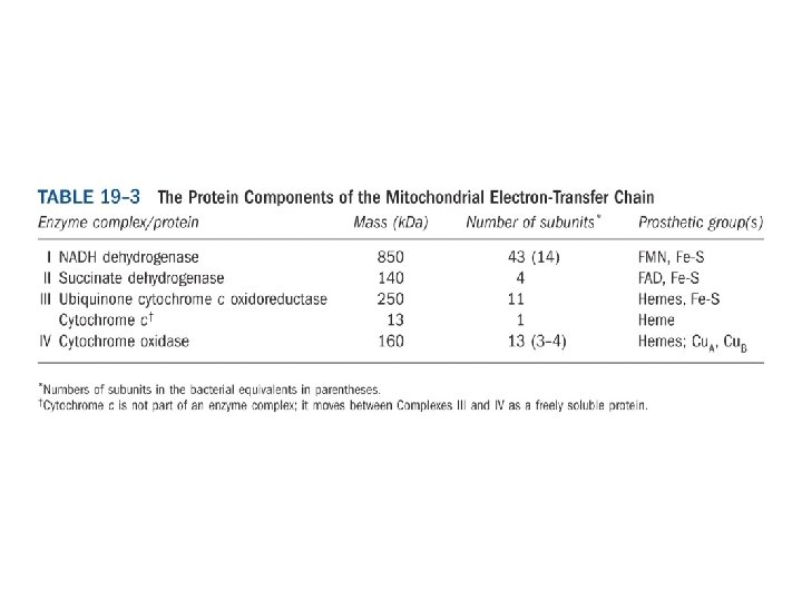 Chemiosmotic coupling allows nonintegral stoichiometries of O 2 consumption and ATP synthesis • If 10 protons are pumped out per NADH and 4 must flow in to produce 1 ATP, the proton-based P/O ratio is 2. 5 for NADH as the electron donor and 1. 5 for succinate. • 1 NADH可產生 2. 5 ATP • 1 FADH 2可產生 1. 5 ATP