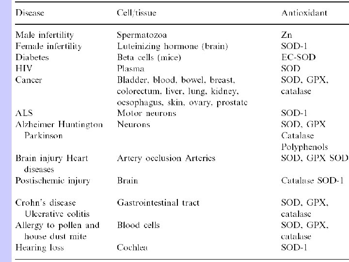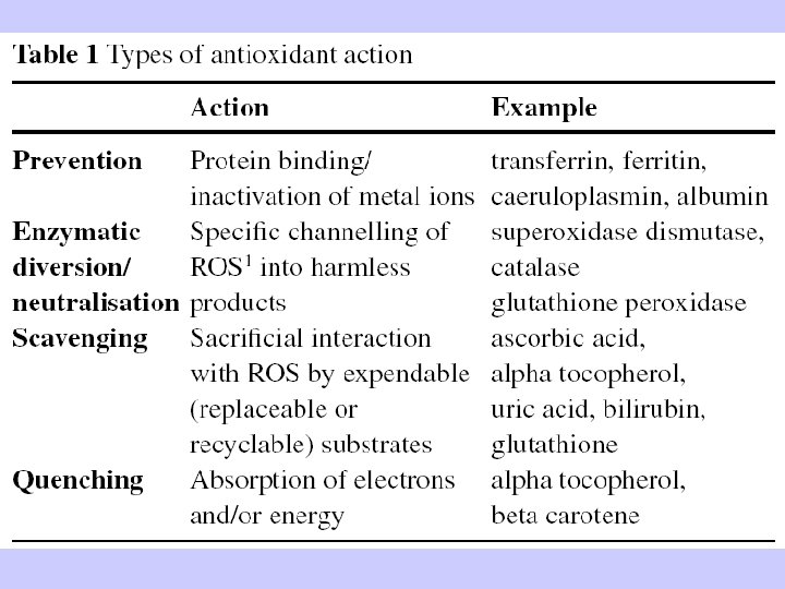 Antioxidative system • Antioxidant – Glutathione, GSH – Vitamin C, E – Cysteine – Protein-thiol – Cerutoplasmin: important in reducing Fe 3+ release from ferritin • Antioxidative enzyme