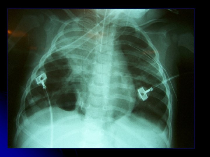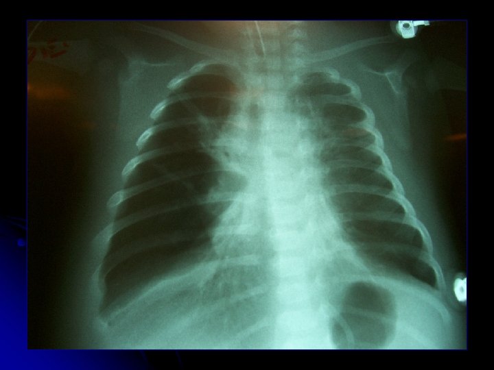 l l ♀ A. C. A. 1 a 3 m Antecedentes l l RNPT 30 sem DBP no O 2 dependiente Atresia esofágica op Cuadro actual l l 1 semana rinorrea y tos. Fiebre 4 días Hospitalización 29/12 Rápida progresión → UCIP a VM l Rx: pneumotórax a Izq. c/drenaje l Deterioro 24 hrs: Sospecha fístula broncopleural l VM: 29/10 PMVA 15 FIO 2 80 l 31/12: Traslado a VAFO l IFIs (-)