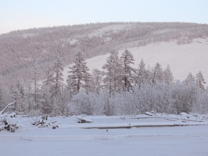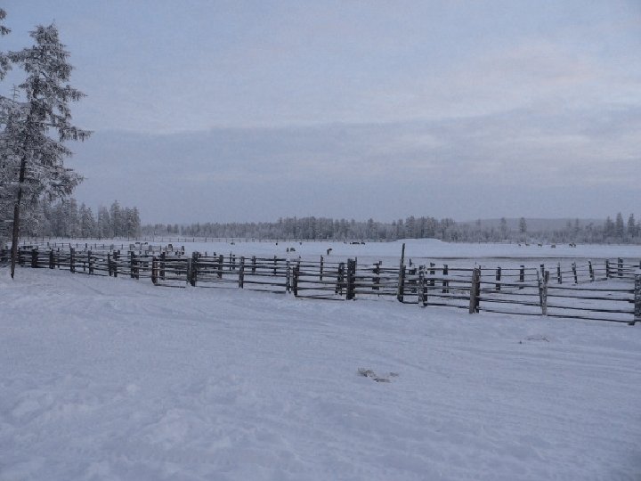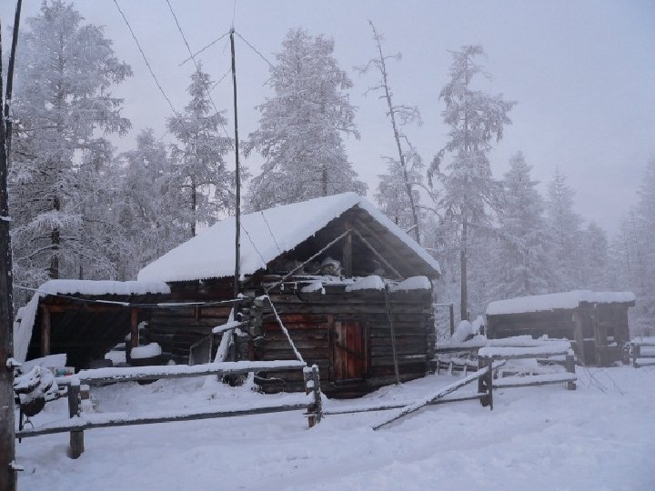 Gedurende negen maanden blijft Oymyakon met sneeuw bedekt, in een bevroren landschap.