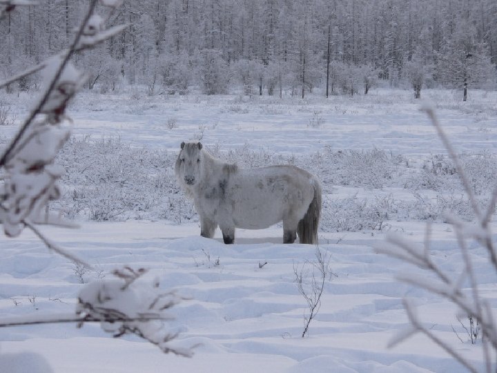 De dieren in de streek hebben zich aangepast aan de strenge weersomstandigheden. De paarden in Oymyakon zijn zeer robust, met korte benen en een dikke pels. Zij werden gebruikt in talrijke pool expedities. Het zijn half wilde paarden die niet houden van bereden te worden. Ze worden gebruikt als lastdieren en hun vlees wordt zeer geapprecieerd door de dorpsbewoners, die zeer weinig groenten eten omdat de lage temperaturen al het fruit en groenten beschadigen.