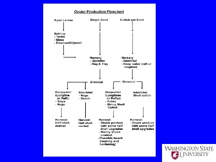 Purchase and Storing Tips • If stored at 36 -40 degrees F in a moist environment, oysters can be kept up to two weeks after they are collected, however, shelf life is shorter after spawning in the summer. • As a rule, Olympia oysters command the highest price, followed by European oysters, Kumamotos, Pacific oysters, and Eastern oysters. • By law, a live-oyster shipment must include identification of the oysters' origin and collection date; it is illegal to discard this tag sooner than 90 days after delivery.