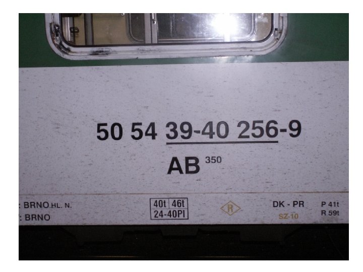AB CD EFG H IJK - L • AB. . . režim vozu • určuje použití ve vnitro/mezinár. dopravě • CD. . . vlastnická železniční správa • EFG. . . přepravně technické parametry • H. . . pořadové číslo intervalu • toto číslo má závislost s velkým písmenem písmenného označení • IJK. . . pořadové číslo vozu • L. . . kontrolní číslice