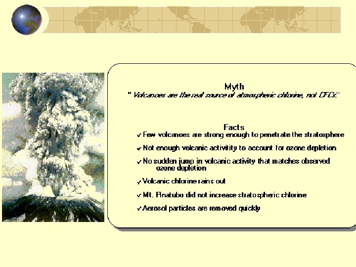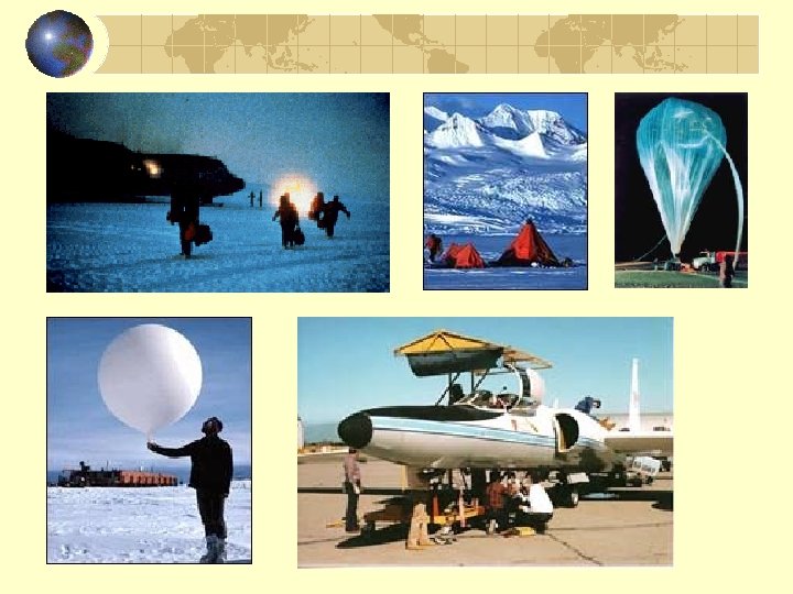 Antarctic Reactions Winter reactions Polar vortex: -90 o. C Ice clouds Cl. ONO 2 + H 2 O HOCl + HNO 3 HOCl + HCl Cl 2 + H 2 O Spring reactions Cl 2 + h 2 Cl in early spring Cl + O 3 Cl. O + O 3 destructive loop HNO 3 + Cl Cl. ONO 2 in photocatalysis
