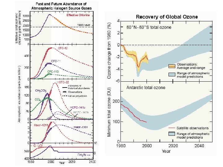 40 Gases destroy ozone here Altitude (km) Polar cloud surfaces lead to much more ozone destruction, in the heart of the layer HCl 20 20 Cl Cl 2 Cl. ONO 2 Cl. O Ozone 0 Slide by Susan Solomon Amount of ozone Activated Reservoirs for ozone loss