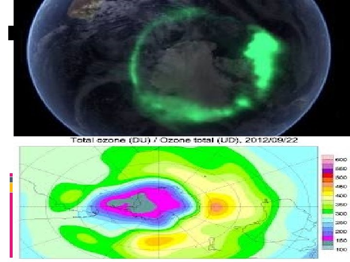 ŠTO JE RAZARANJE OZONA PREDSTAVLJA? Razaranje ozona prestavlja dvije različite pojave, koje su primjećene kasnih 1970 -tih, a to su smanjenje količine ozona u ozonskom omotaču, za otprilike 0, 4 % godišnje i ozonske rupe, pojava smanjenja stratosferskog ozona u listopadu, iznad Antartike. Uzroci tih dviju pojava su slični, ljudske aktivnosti stvaraju povećanu koncentraciju klora (Cl) i broma (Br), posebno ispuštanjem klorofluorovodika (freoni) i halona. Svaki atom Cl ili Br, može razbiti i preko 10 000 molekula ozona, prije nego što nestane iz stratosfere.