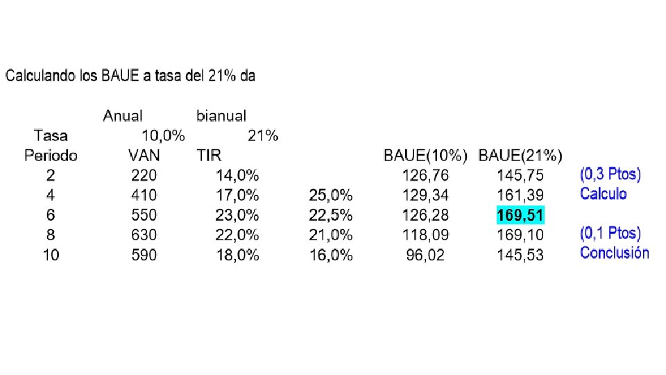 • El indicador BAUE (o CAUE) nos servirá como indicador para evaluar un proyecto cuando éstos tengan distinta vida útil y los proyectos no se puedan repetir. • Falso, ambos indicadores nos permitirán comparar proyectos repetibles a infinito y con distinta vida útil.