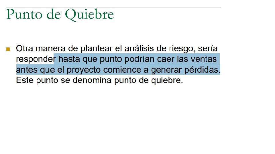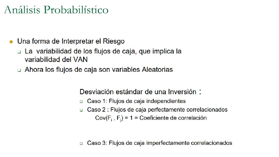 • Un proyecto que presenta un VAN igual a cero no debe implementarse ya que no genera utilidades al inversionista. • Falso. Un proyecto con VAN= 0 no significa que la utilidad sea igual cero, sino que reporta la misma utilidad de la mejor alternativa. Por lo tanto, cubre exactamente el costo de oportunidad.