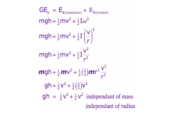 (d) What assumption(s) did you make in answering the previous question? Assumption: that all of the gravitational potential energy at the top of the hill was converted to linear kinetic and rotational kinetic energies at the base of the drive. Or: no energy was “lost” to heat or sound as the ball rolled down the drive.