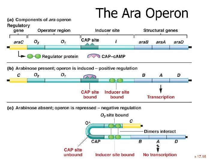 ARABINOSE OPERON REGULATION ara Operon ara. C B A D Effector (Arabinose) ara. C B A D INDUCIBLE OPERON PRESENCE OF ARABINOSE TURNS ON GENES THAT MAKE ENZYMES TO DIGEST ARABINOSE RNA Polymerase ara. C B A D