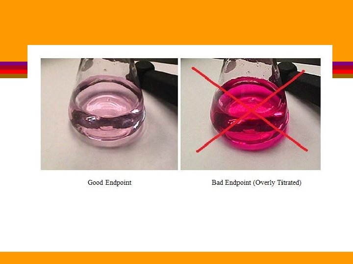 Equivalence Point l Use phenolphthalein as an indicator • Turns fuchsia in a basic solution • Stop titrating when the solution turns light pink • This is called the endpoint