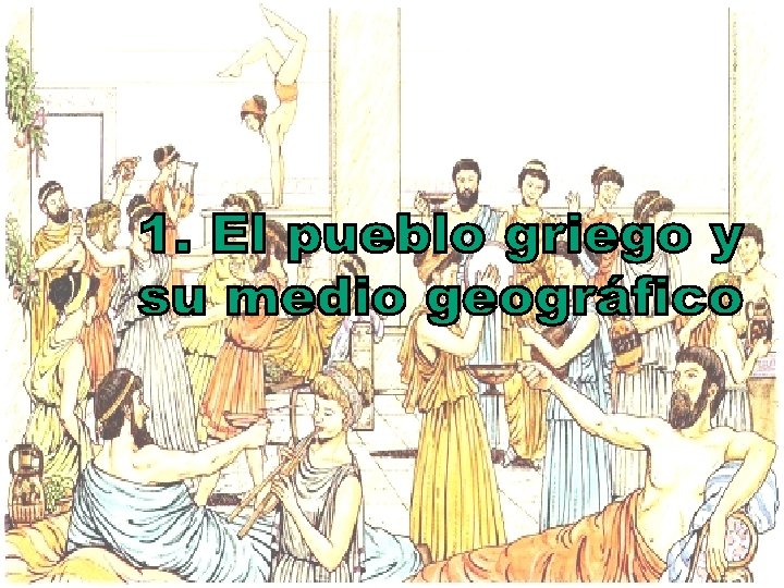 p Los griegos (pueblo mediterráneo) se llamaban a sí mismos “helenos” (descendientes de Helen, un antiguo antepasado) p Hacia el siglo VIII a. C habitaban en cientos de ciudades – estado en la cuenca del mar Egeo, así como en algunas zonas costeras del mar Mediterráneo y del Mar Negro p Todo territorio habitado por los griegos constituía parte de la Hélade p Los griegos desarrollaron una de las más brillantes civilizaciones de la antigüedad alcanzando su apogeo en el siglo V a. C