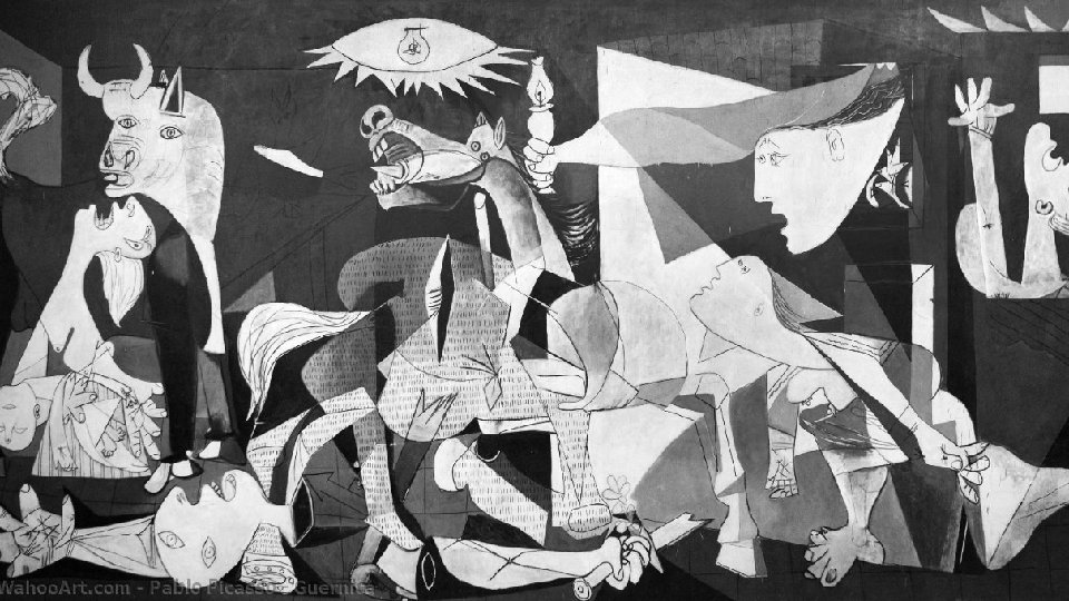 LA BARBARIE • En 1937, picasso fue invitado a pintar un gran mural para el pabellón español en la Exposición Universal de París. Picasso eligió a Guernica como su tema. La pintura muestra una serie de escenas aterradoras que muestran la brutalidad de la guerra y su destructividad.