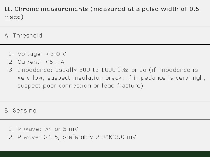 Strength–Interval Relation • The stimulation threshold is influenced by the coupling interval of electrical stimuli and frequency of stimulation • ICD- greater stimulus intensity during ATP than during antibradycardia pacing