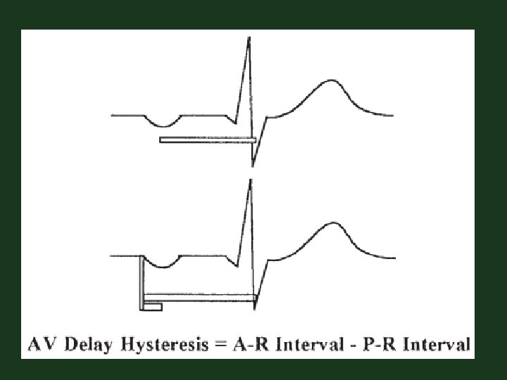 Hysteresis • Allows the rate to fall below the programmed lower rate following an intrinsic beat Lower Rate Interval-60 ppm VP VP Hysteresis Rate-50 ppm VS VP