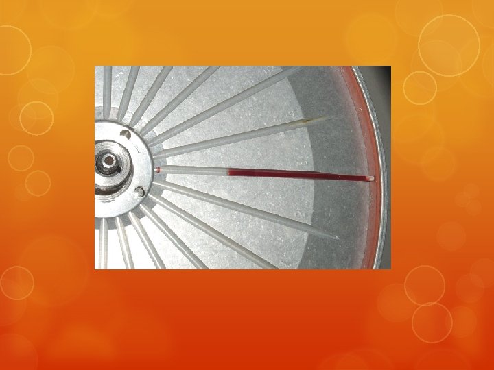 A blood sample should be spun in a microhematocrit centrifuge for 2 -5 minutes. Lie the tube in the centrifuge with plugged end to the outside. *Note the number of your slot. Ensure that a balancing hematocrit tube is placed opposite, either by someone placing their tube there, or by adding an empty tube The cells are heavier than the plasma and are compacted at one end of the tube.